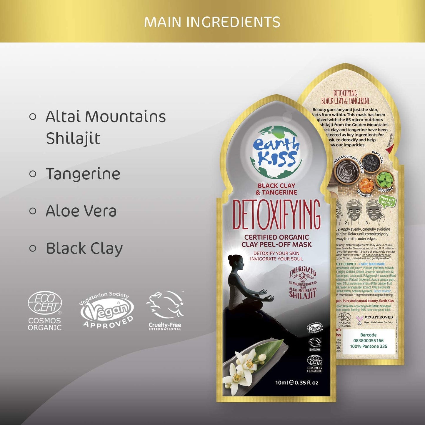 Earth Kiss Inspirations Detoxifying Organic Clay Peel Off Mask (10ml) with Shilajit, Black Clay and Tangerine to Detoxify Your Skin